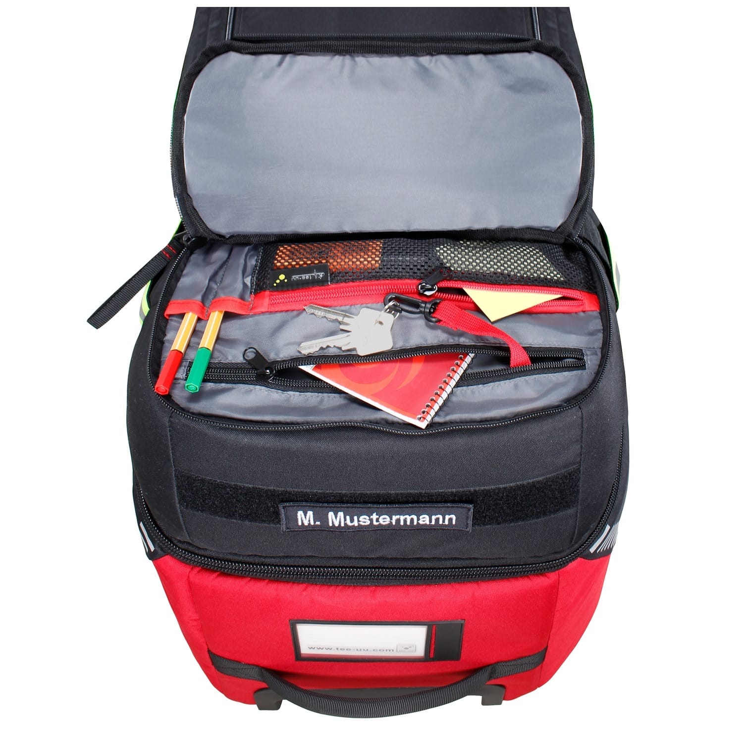 Eine besondere Stärke ist das große, über 25 Liter fassende Stiefelfach im unteren Hauptfach. Es ermöglicht die hygienisch getrennte Lagerung von Stiefeln bis Größe 50 oder getragener bzw. nasser (Einsatz-)Kleidung in der Tasche. Bei Bedarf oder zur Reinigung kann das, mit Klett fixierte Stiefelfach einfach entnommen werden.