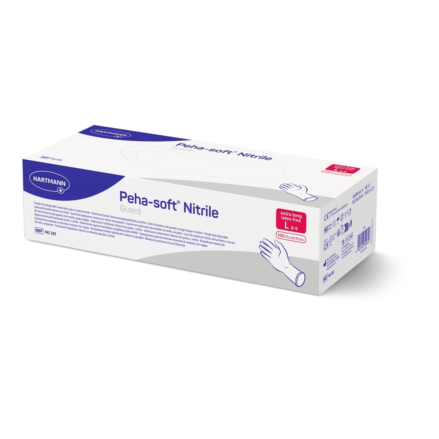 HARTMANN Peha-soft nitril Guard Latexfreie Einmal-Untersuchungs- und Schutzhandschuhe aus weichem Nitrilkautschuk.
